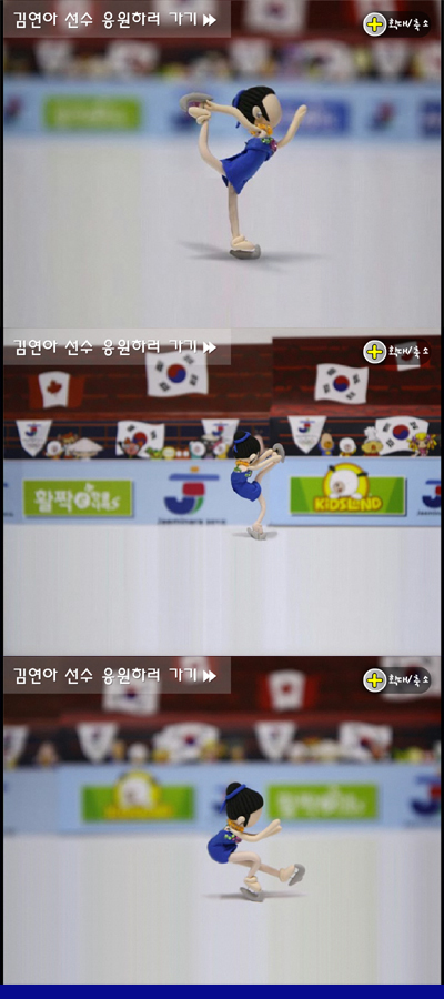 김연아 선수와 대한민국 응원하기, 나도 국가대표, 금메달 수 맞추기 등으로 구성되어 있는 “2010 밴쿠버 동계올림픽 테마관”은 김연아 선수와 대한민국 응원하기는 클레이애니메이션으로 제작된 김연아 선수의 피겨스케이팅 모습을 UCC 동영상으로 제작 되어 유튜브 및 다양한 동영상 매체를 통하여 급속도로 전파 되고 있다.( http://www.youtube.com/watch?v=JhMybdcNYwo)