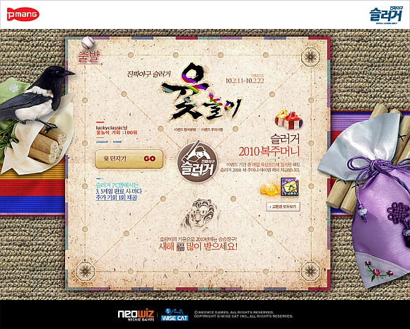 밀리터리 FPS ‘아바(A.V.A)’에서는 12일부터 15일까지 ‘구정에 세배(3배)돈 받아라’ 이벤트를 선보인다. 한판 이상 게임을 플레이 할 경우 기존보다 세배 이상의 게임머니를 제공받을 수 있다. 온라인 야구게임 ‘슬러거’는 11일부터 22일까지 설맞이 ‘진짜야구 슬러거 2010 윷놀이!’ 이벤트를 오픈한다.