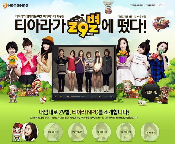 NHN의 국내 최대 게임포털, 한게임은 캐주얼 RPG 게임 `내맘대로 Z9별`의 공식 모델로 인기 걸그룹 ‘티아라’를 선정하고, 이를 기념하여 ‘티아라’의 여섯 멤버의 독특한 개성을 엿볼 수 있는 게임 이벤트를 진행한다.