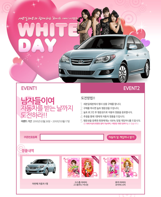 소노브이 윤성록 본부장은 “이번 공동 이벤트는 누구나 쉽게 참여해 다양한 혜택을 받을 수 있는 기회” 라며 “놀토에서 준비한 다양한 이벤트를 통해 2010년 올해 기억에 남는 특별한 화이트데이 보내시길 바란다.”고 전했다.