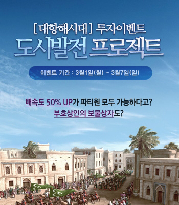 게임포털 넷마블이 서비스하는 `대항해시대 온라인(이하 대항해시대)`이 ‘도시발전 프로젝트’ 이벤트를 3월 7일까지 진행한다.