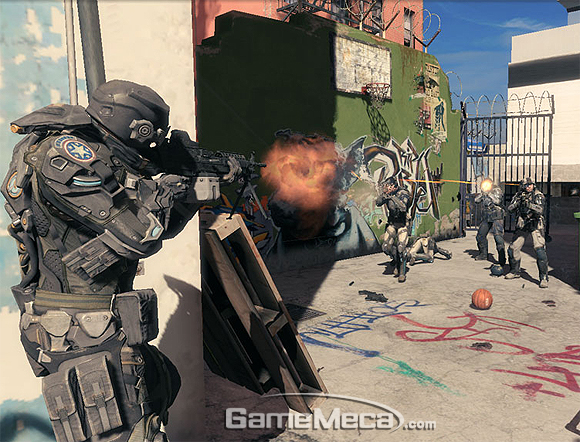 연출된 화면이 아니다. 벽을 뛰어넘을 수 있는 액션을 할 수 있다. 일반 FPS게임에서는 앞을 가로막는 벽을 무조건 회피하거나 돌아갈 수밖에 없는데 이런 액션을 통해 보다 빠르게 적과 조우할 수 있게 하고 전략적인 활용할 수 있도록 만들어 졌다.