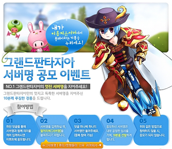 지난 3월 9일까지 비공개테스트를 진행한 판타지 MMORPG ‘그랜드판타지아’가 공개서비스를 앞두고 서버 이름 공모 이벤트를 진행한다.