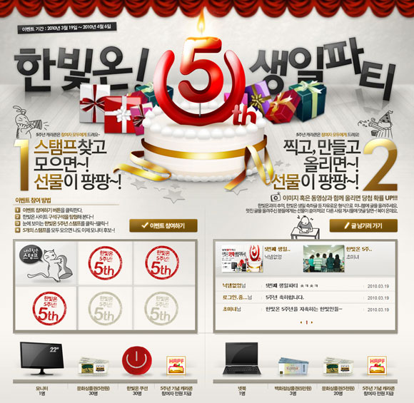 한빛소프트의 게임 포털 한빛온이 5주년을 맞이해 오늘(19일)부터 4월 6일까지 기념이벤트 ‘한빛온, 신나는 5번째 생일파티’를 실시한다.