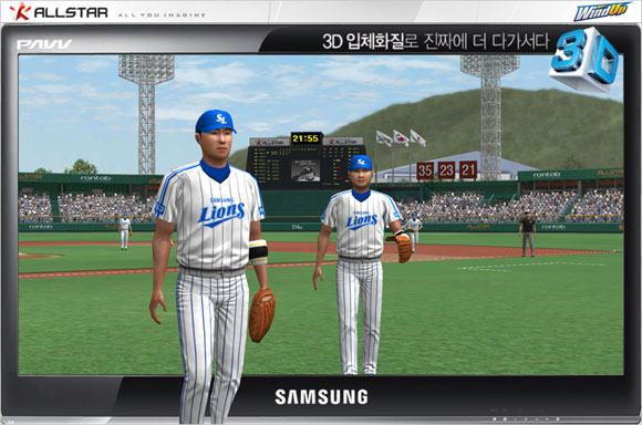 실제 야구장은 물론 선수의 체형과 얼굴까지 사실적으로 재현해, 온라인 야구게임의 그래픽 수준을 한 단계 올려놓은 `와인드업`이 삼성파브 3D LED TV의 광고를 수주하고 게임 내 노출을 시작했다.