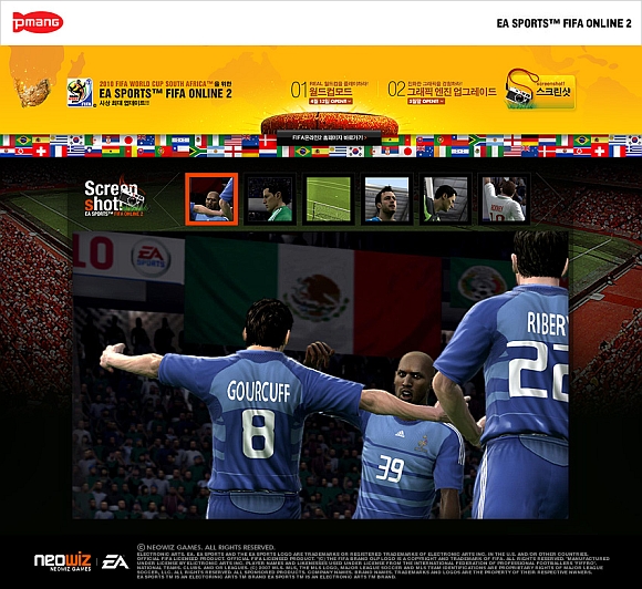 네오위즈게임즈는 일렉트로닉 아츠와 공동 개발한 정통 온라인 축구게임 ‘EA SPORTS FIFA ONLINE 2(이하 FIFA 온라인 2)’에서 2010 FIFA 월드컵을 맞이해 업데이트 될 ‘FIFA 월드컵 모드’의 티저 페이지를 오픈 한다고 1일 밝혔다.