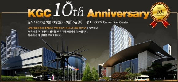 한국게임개발자협회는 `한국국제게임컨퍼런스2010(Korea Games Conference 2010, 이하 KGC2010)`를 9월 13일부터 9월 15일까지 서울 코엑스에서 개최한다고 밝혔다.