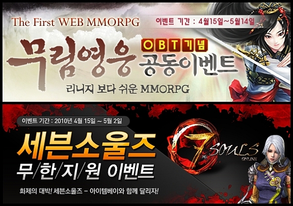 아이템베이가 4월 15일부터 특별한 혜택으로 소개하는 신작게임은 엔플레버와 이온소프트가 서비스하는 ‘무림영웅’과 씨알스페이스의 ‘세븐소울즈’이다.