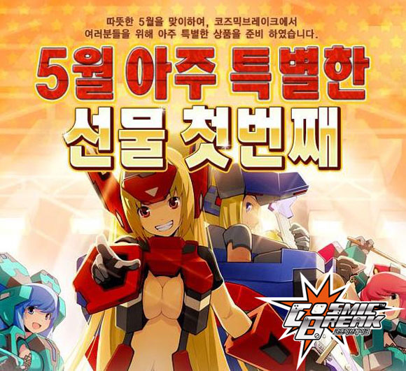 윈디소프트는 금일 메카닉 조립 액션 `코즈믹브레이크`가 가정의 달 5월을 맞이해 특별 프로모션을 진행한다고 밝혔다.