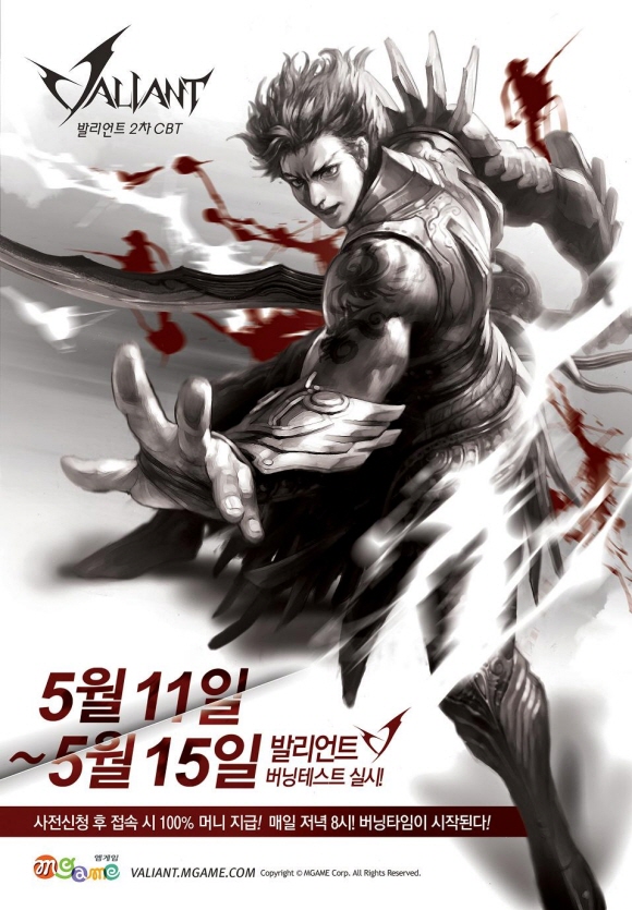 최근 무술 감독 정두홍씨를 액션 디렉터로 선임하고 ‘리얼액션’ 세계를 구현 해 나갈 ‘발리언트’는 지난 테스트보다 새로워진 컨텐츠로 2차 비공개 테스트 ‘버닝 테스트’를 오는 5월 11일(화)부터 15일(토)까지 진행할 예정이다.