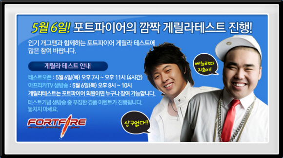 게임사업본부 정순권 PD는 “7월 본격적인 3차 CBT에 앞서 트위터, 미투데이 등 마이크로 블로그 뿐만 아니라 아프리카 TV 등의 다양한 매체를 통해 유저들과 소통할 예정이다”며, “인기 개그맨들의 폭소 해설과 함께 하는 포트파이어 스페셜 방송에 많은 관심 부탁드린다”고 밝혔다.
