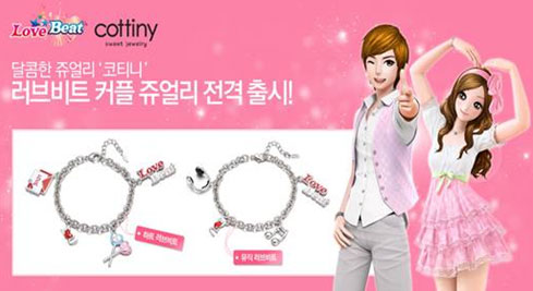엔씨소프트의 온라인파티댄스게임 `러브비트`가 국내 주얼리 업체 ‘코티니’와 함께 만든 러브비트 전용 액세서리 ‘러브비트 DIY 팔찌’ 를 출시하고, ‘러브비트 커플 주얼리 파티’ 이벤트를 오늘부터 실시한다.