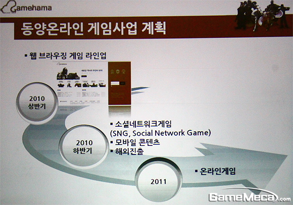 또한, 국내 개발사와 공동개발을 통해 ‘페이스북’과 일본과 중국에서 뜨거운 반응을 얻고 있는 SNS서비스인 ‘믹스’, ‘큐큐’ 등에서 서비스 할 수 있는 소셜네트워크 게임을 올 하반기 중으로 개발해 해외시장 진출의 교두보로 삼겠다는 야심 찬 계획을 밝혔다.