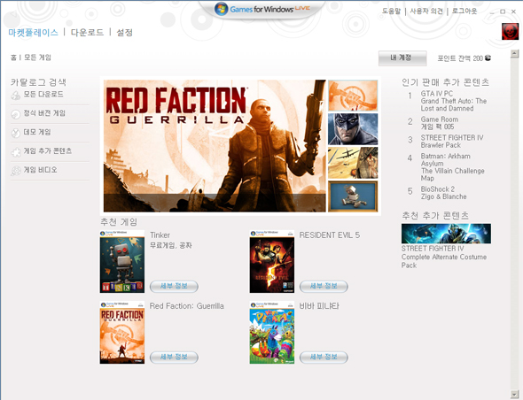 게임 포 윈도우즈 라이브의 메인화면