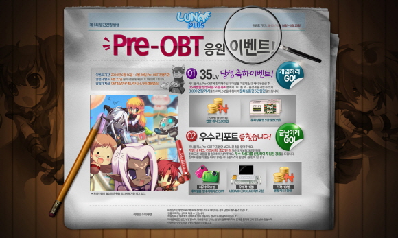 아울러 프리 오픈 베타 테스트를 기념해 `35레벨 달성 축하’ 이벤트와 ‘우수 리포트를 찾습니다!’라는 2가지 이벤트를 같이 진행한다. 이벤트 기간은 6월 16일부터 20일까지 프리 오픈 베타 테스트 기간과 같다.