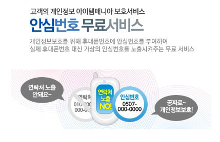 이번에 도입되는 ‘0507 안심번호 서비스’는 인터넷 상에서 개인의 휴대폰 번호가 노출되는 것을 방지하기 위해 휴대폰 번호 대신 쓸 수 있는 일회용 가상 전화번호를 제공하는 서비스다. 이에 따라 아이템매니아 사이트에 거래 물품을 등록하는 사람은 실제 휴대폰에 연결되는 가상의 0507 전화번호(11자리)를 받게 되며, 구매자가 이 번호로 전화를 걸게 돼 거래 전 과정에서 개인 정보의 노출이 차단된다. 또 한번 개인에게 부여된 0507 번호는 거래 종료와 동시에 완전 해지돼 더욱 안전하다.