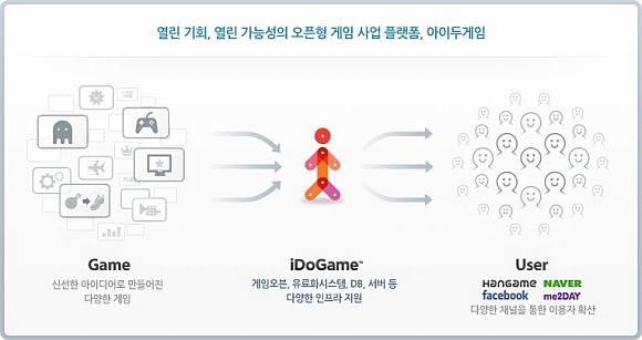 한편, <아이두게임>은 별도의 게임 제작 및 서비스 비용 없이 ‘게임오븐’이라는 제작툴을 사용해 창의적인 아이디어를 게임으로 실현하고, 한게임의 서비스 인프라 플랫폼을 활용해 게임을 서비스하며, 게임의 인기에 따라 수익을 얻을 수 있는 신개념 게임 오픈 마켓 서비스로서, 오는 7월 말 최종 테스트를 진행한 뒤 2010년 하반기 정식 서비스 될 예정이다.