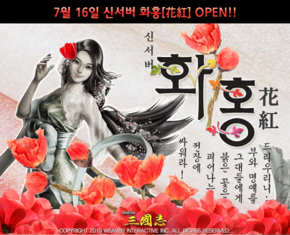 무협 온라인게임 `온라인삼국지` 가 16일(금), 신서버 ‘화홍(花紅)’을 오픈하고 기념 이벤트를 진행한다.