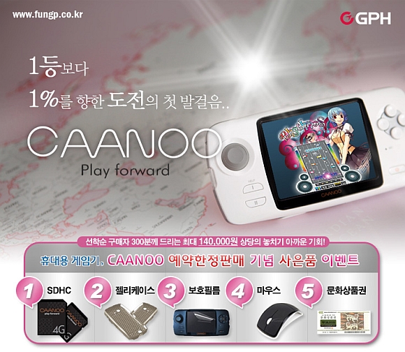 대한민국 휴대용 게임기 개발사 지피에이치(대표이사 이범홍, 이하 GPH)는 자사가 야심차게 개발한 휴대형 게임기 ‘카누(CAANOO)’의 한정 예약판매를 실시한다고 7월 30일 밝혔다.