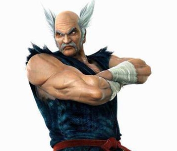 ▲ `철권`의 마스코트 할아범 `헤이하치 미시마`의 영화(위) 와 게임(아래) 모습