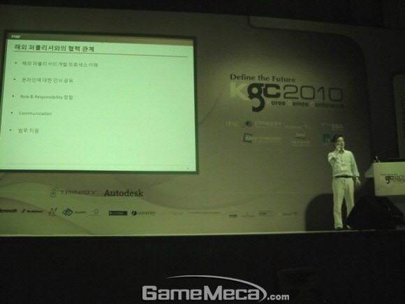 ▲ 박상근 지사장이 해외 대형 퍼블리셔와의 협력 관계에서 중요한 점을 설명하고 있다