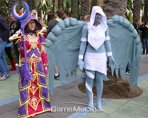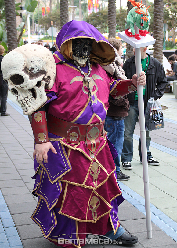 누구도 생가하지 못했던 인물을 코스튬하면 퀄리티와 상관없이 열렬한 환호를 받으니까요. 22일 애너하임 컨벤션 센터에서 열렸던 블리즈컨 코스튬 콘테스트에서는 이런 상상력이 절정에 이루던 순간이었습니다. 허술한 일리단 코스튬 플레이어가 갑자기 등뒤의 날개를 펴는 순간, 우체통으로 변신한 유저가 무대를 오르는 순간, 데스윙이 메인스테이지를 누비는 순간 모두 절정의 탄식이 흘러나와습니다. 게임메카는 그 화려한 순간을 카메라에 담았습니다.