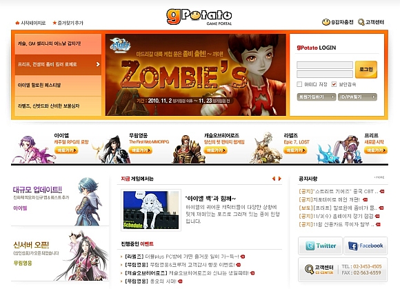 <지포테이토> 리뉴얼 오픈을 통해 게이머들은 메인 화면에서 한 눈에 각종 이벤트와 공지사항을 확인할 수 있으며, 세계적으로 각광 받고 있는 소셜 네트워크(SNS)인 ‘트위터’와 ‘페이스북’으로 바로가기가 신설되어 <지포테이토>를 이용하는 게이머들간의 커뮤니케이션에 활기를 불어넣어 줄 것으로 기대를 모으고 있다.