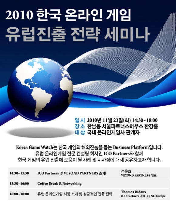 비욘드파트너스는 오는 23일, 온라인게임 업체 관계자를 대상으로 `2010 한국 온라인 게임 유럽진출 전략 세미나` 를 개최한다.