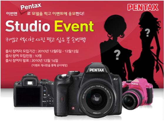 가격비교 사이트 다나와가 디지털 카메라 제조사인 펜탁스와 함께 스튜디오 촬영 이벤트를 벌인다. 이번 행사에는 전문모델이 피사체로 참여하며 16일 오후 7시 도곡동 스튜디오에서 2시간 동안 진행된다