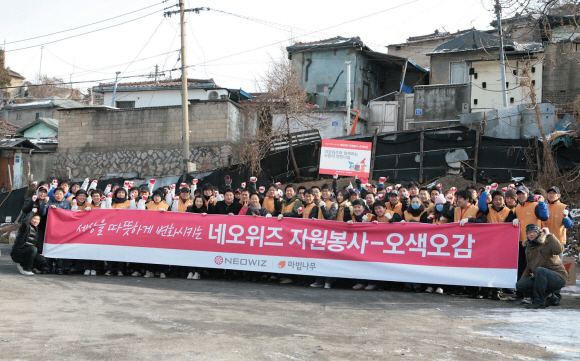 네오위즈게임즈와 게임온스튜디오 임직원 150여 명은 10일 노원구 중계본동에서 밥상공동체연탄은행과 함께 `사랑의 연탄나눔` 자원봉사를 실시했다.