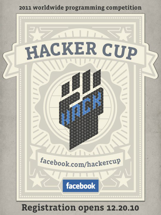 세계 최대 소셜 서비스 페이스북은 전세계의 해커들을 대상으로 연간 알고리즘 프로그래밍 대회인 `해커컵(Hacker Cup)` 을 개최, 21일(현지시각 20일)부터 등록 접수를 시작한다고 밝혔다.