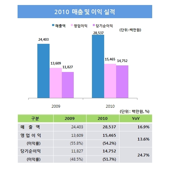 게임빌이 업계 최고의 실적을 기록한 2010년 실적을 9일, 발표했다.