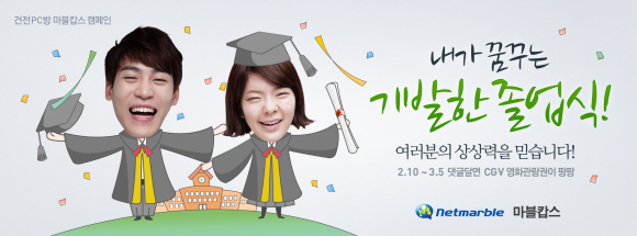 CJ인터넷은 경찰청, YMCA와 함께 론칭한 건강한 PC방 만들기 캠페인 `출동! 마블캅스` 가 졸업시즌을 맞아 `내가 꿈꾸는 기발한 졸업식` 댓글 달기 이벤트를 진행한다고 밝혔다.