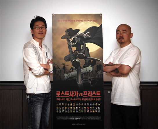 `프리스트` 는 악마에게 영혼을 판 신부의 복수를 소재로 한 만화로 국내에서 50만 부, 해외에서 100만 부가 판매될 정도로 큰 인기를 누렸으며, 최근에는 한국만화 최초로 헐리우드 영화로 제작되어 화제를 낳고 있다. 대전 액션게임 차세대 대표 주자를 목표로 노력을 기울이고 있는 `로스트사가` 와, 현재 가장 뜨거운 문화 콘텐츠로 이름을 날리고 있는 ‘프리스트’의 만남은 게임의 재미를 배가시킬 것으로 보인다.