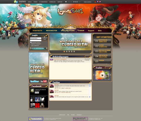`에다전설` 은 오는 7월 중순, 넥슨재팬을 통해 일본에서 CBT 없이 바로 OBT를 진행할 예정이며, 유럽지역 OBT는 오는 8월 진행될 예정이다. 유럽 론칭을 위해 `에다전설` 클라이언트는 다중 언어 선택을 지원하고 있으며, 현재 준비된 언어는 영어, 독일어, 프랑스어로 클라이언트 실행 시 언어를 선택해서 플레이할 수 있다.