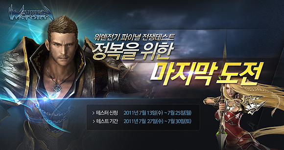 ‘워렌전기’의 파이널 전쟁 테스트는 18세 이상의 유저를 대상으로 7월 27일부터 30일까지 4일간 진행된다. 이번 테스트는 31레벨부터 시작되며, 길드 시스템의 추가와 공성전, 정복전 등의 전쟁 시스템을 공개해 더욱 치열하고 박진감 넘치는 전쟁의 재미를 제공할 예정이다.