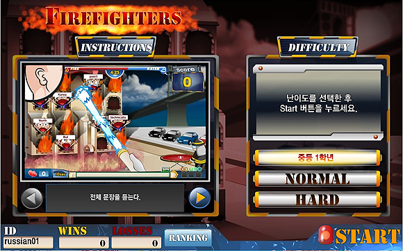 파이어파이터즈(Firefighters)는 들려주는 영어 문장을 듣고 키보드로 타이핑을 치는 방식의 게임이다. 불타는 건물 안에 갇혀 있는 사람들을 구출하기 위해 영어문장을 듣고 타이핑을 치는 스토리다. 문장을 정확하게 타이핑하면 combo 기능으로 세 명이 한꺼번에 구조되며, 긴박한 상황에서 게임에 집중하여 타이핑할 수 있다. 파이어파이터즈는 게임 난이도가 세가지로 중등과정 1,2,3 학년 회화 표현을 듣고 익힐 수 있다.