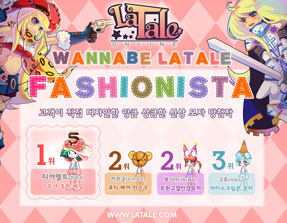 한편, ‘모자 디자인 응모전’을 통해 최종 선별된 4종의 모자 가운데 2종은 7월 22일 라테일 탄생 5주년을 기념해 게임에 접속한 모든 유저들에게 나눠 줄 예정이다.