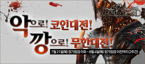 EXC 게임즈는 자사가 개발한 정통 3D 한국형 MMORPG ‘레전드오브블러드(Legend of Blood)’에서 오는 8월 4일까지 `악으로 코인대전! 깡으로 무한대전!` 이벤트를 실시한다.