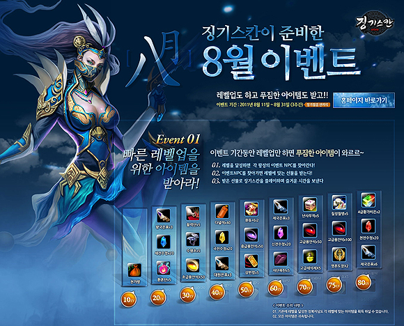 ‘징기스칸 온라인’의 이벤트에 대한 자세한 내용은 홈페이지(http://khan.kr.gameclub.com)에서 확인 할 수 있다.