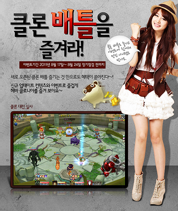 이와 함께 ‘클로배틀’ 업데이트를 기념해 8월 24일까지 `클론 배틀을 즐겨라!` 이벤트를 진행한다. 이벤트 기간 중 클론 배틀 퀘스트를 완료한 모든 유저를 대상으로 클론과 관련된 버프 아이템을 지급하며, 클론 배틀에 대해 제안을 주는 유저 중 10명을 추첨하여 문화상품권을 지급할 예정이다.