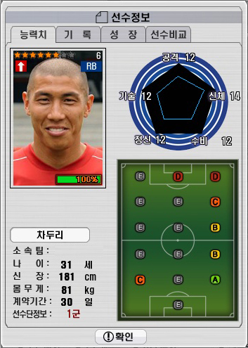 ▲이번 업데이트를 통해 추가 될 차두리의 데이터 정보