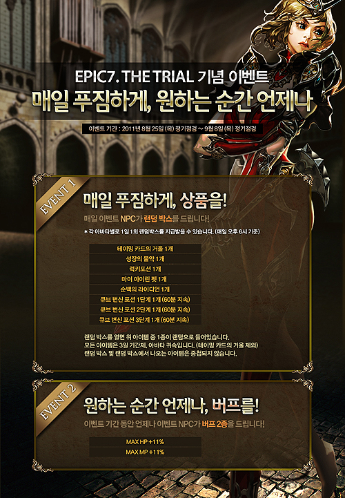 업데이트와 더불어 내달 8일까지 기념 이벤트 “매일 푸짐한 상품이”가 진행된다. 이벤트 기간 동안 아바타별로 성장의 물약, 럭키 포션 등이 들어있는 랜덤박스와 버프 2종을 지급한다.