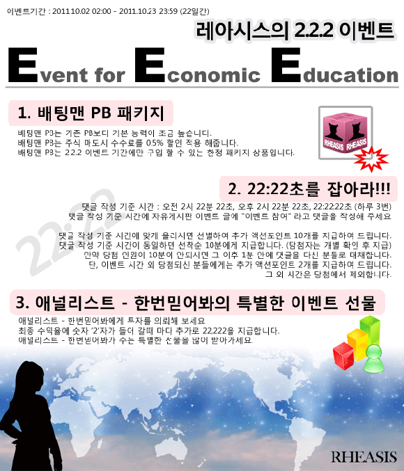 SNS을 가미한 `레아시스`에서 2011.10.02일부터 22일간 2.2.2 이벤트를 실시한다고