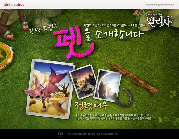 이번 업데이트는 설문조사를 통해 나타난 게이머들의 요청을 반영한 것으로, `앨리샤` 의 재미를 한층 강화시킬 것으로 기대하고 있다. 금일(20일)부터 게이머는 레이스를 통해 펫이 들어있는 ‘포츈에그(알)’ 를 획득할 수 있으며, 포츈에그를 부화시켜 펫을 데리고 다닐 수 있다.