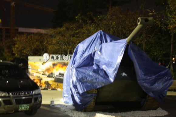 벡스코 앞 광장에 위장(?)하고 있던 탱크, 전쟁이라도 할 기세