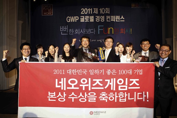 네오위즈게임즈는 10일 GWP코리아가 선정한 ‘2011 대한민국 일하기 좋은