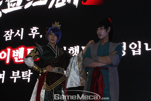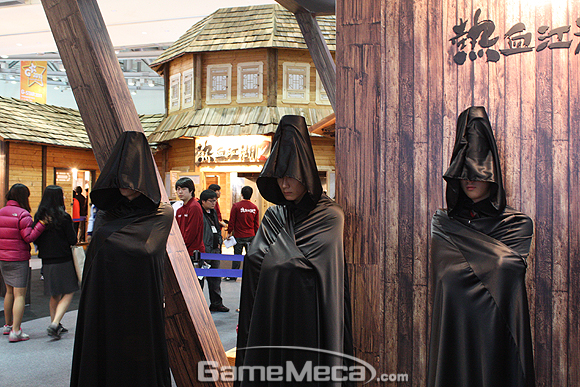 혹시 전시회장 내에서 검은 망토를 두른 정체불명의 무리를 본 일이 있는가? 그들은 열혈강호 원작 만화에도 등장한 바 있는 ‘흑풍회’의 복장을 착용한 엠게임 부스의 스탭이다. 부스에서도 그들은 검은 의상만큼이나 어둡고 무거운 분위기를 연출하고 있다.