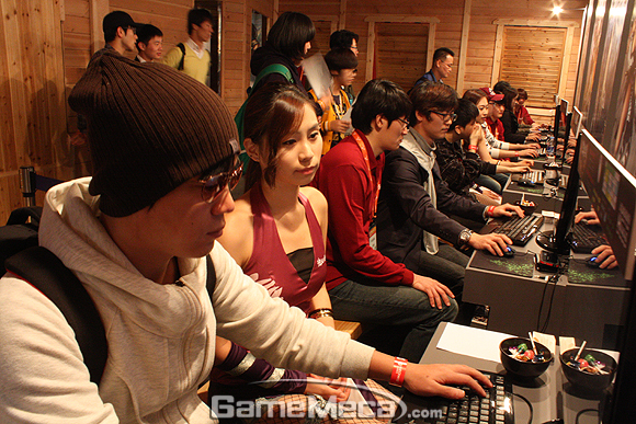 엠게임 부스에서 가장 인상 깊었던 점은 부스걸이 시연을 ‘적극적으로’ 돕는다는 것이다. 물론 부스걸이 도우미 역할을 하는 것은 특별한 일이 아니다. 그러나 직접 옆자리에 앉아서 게임 진행을 돕는 장면은 흔히 볼 수 없다. 이와 같은 특별 서비스에 관람객들도 만족한 표정이었다.