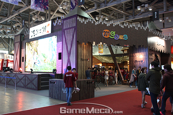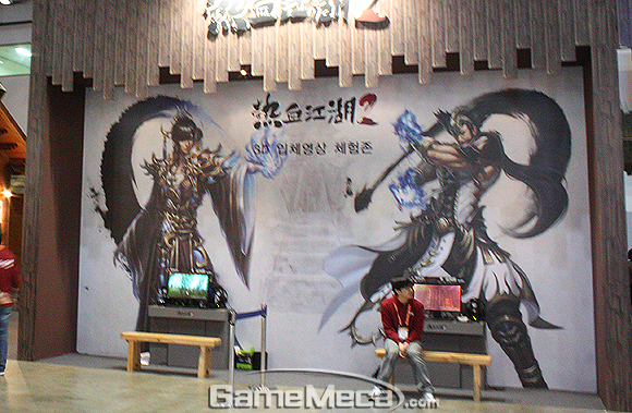 엠게임의 출품작은 `열혈강호2` 한 작품이다. 무협 세계관의 게임답게 부스도 동양적인느낌을 풍기는 목조 건물 형태로 디자인되어 있다.